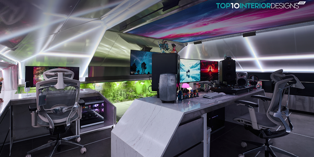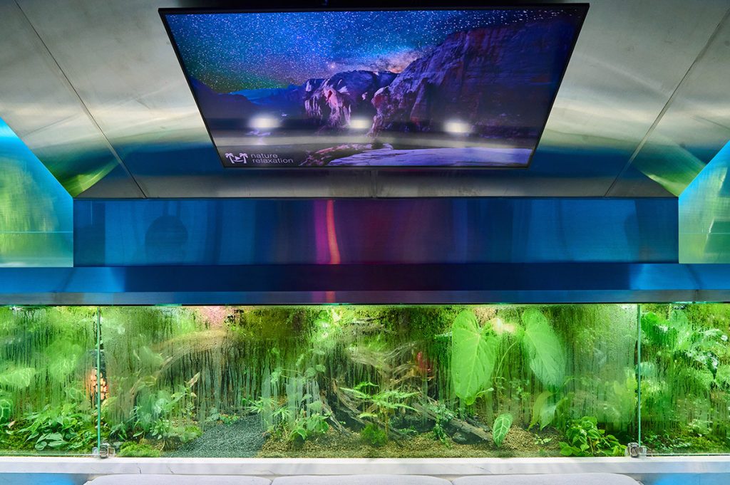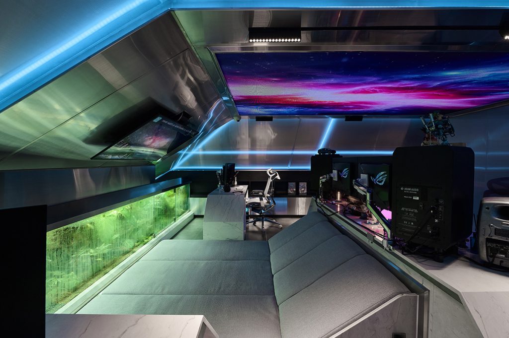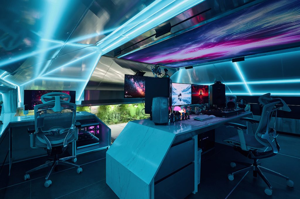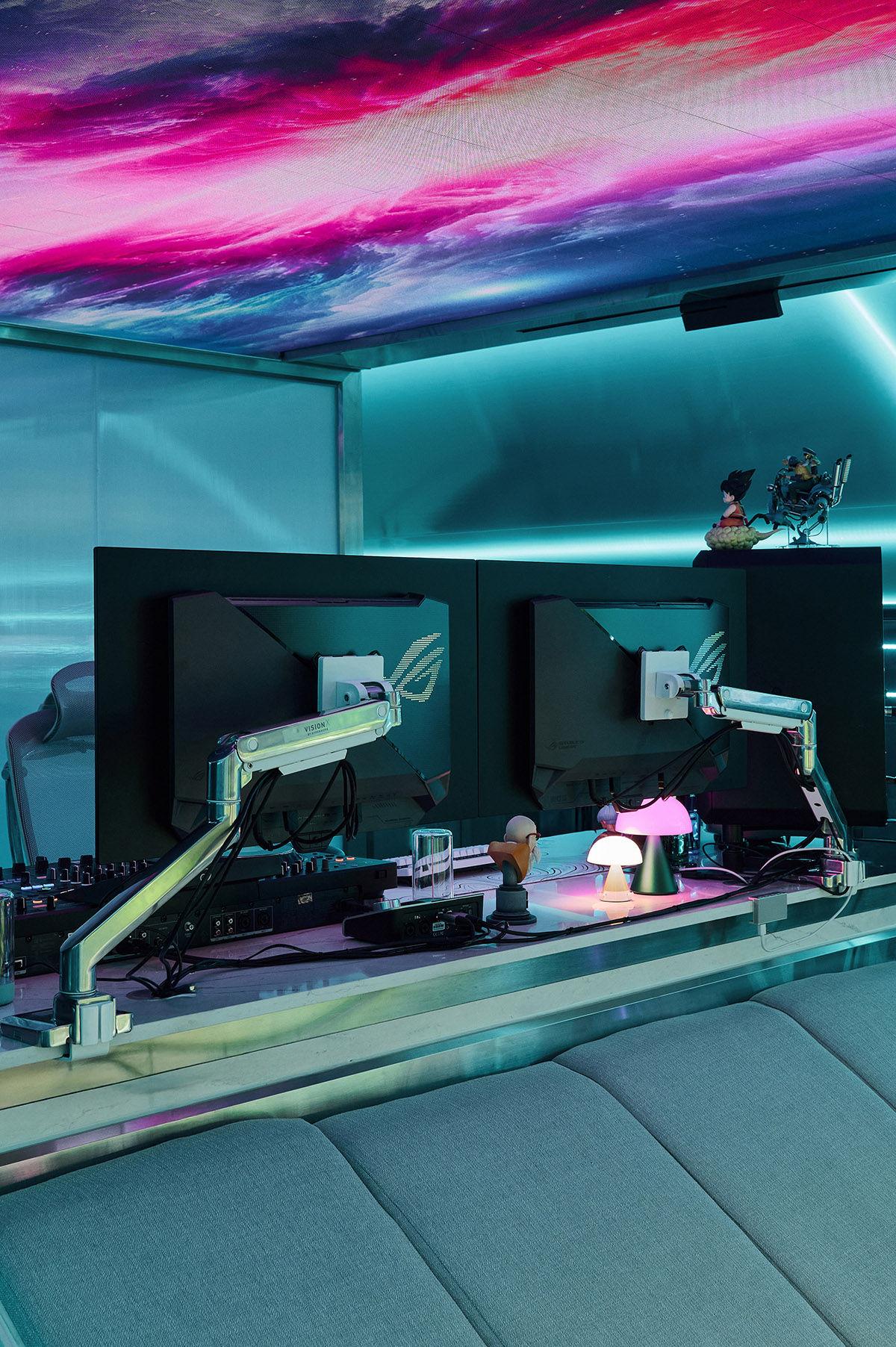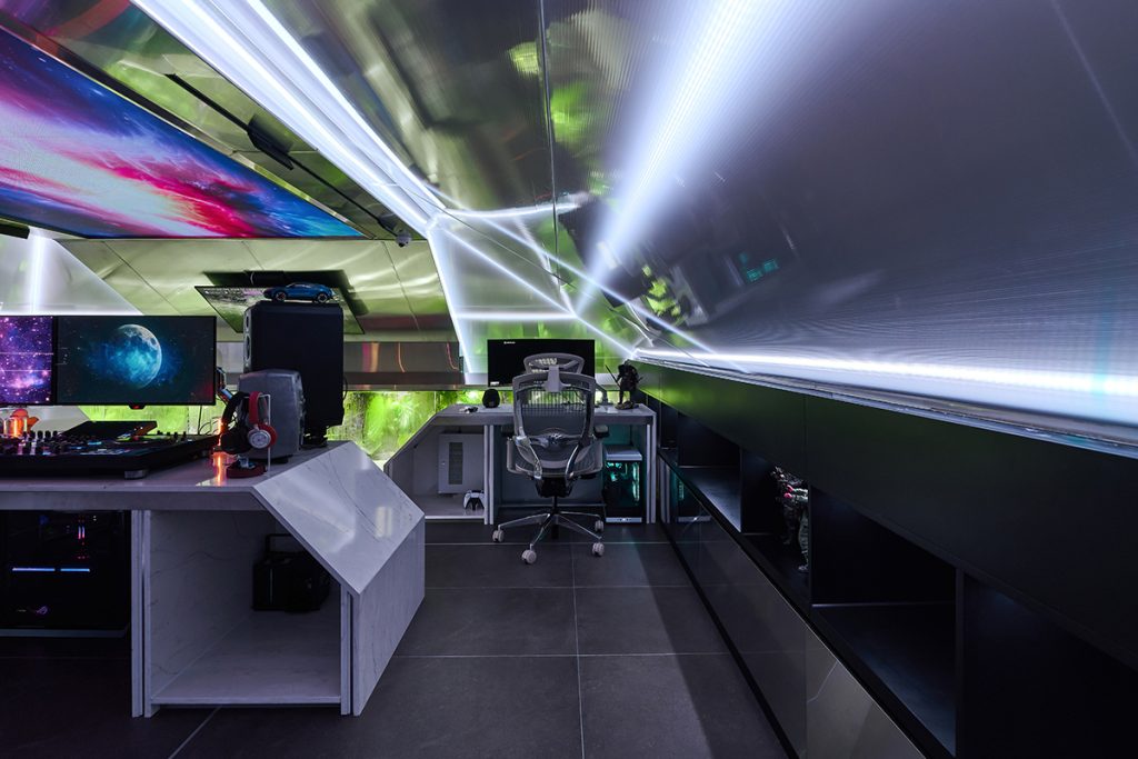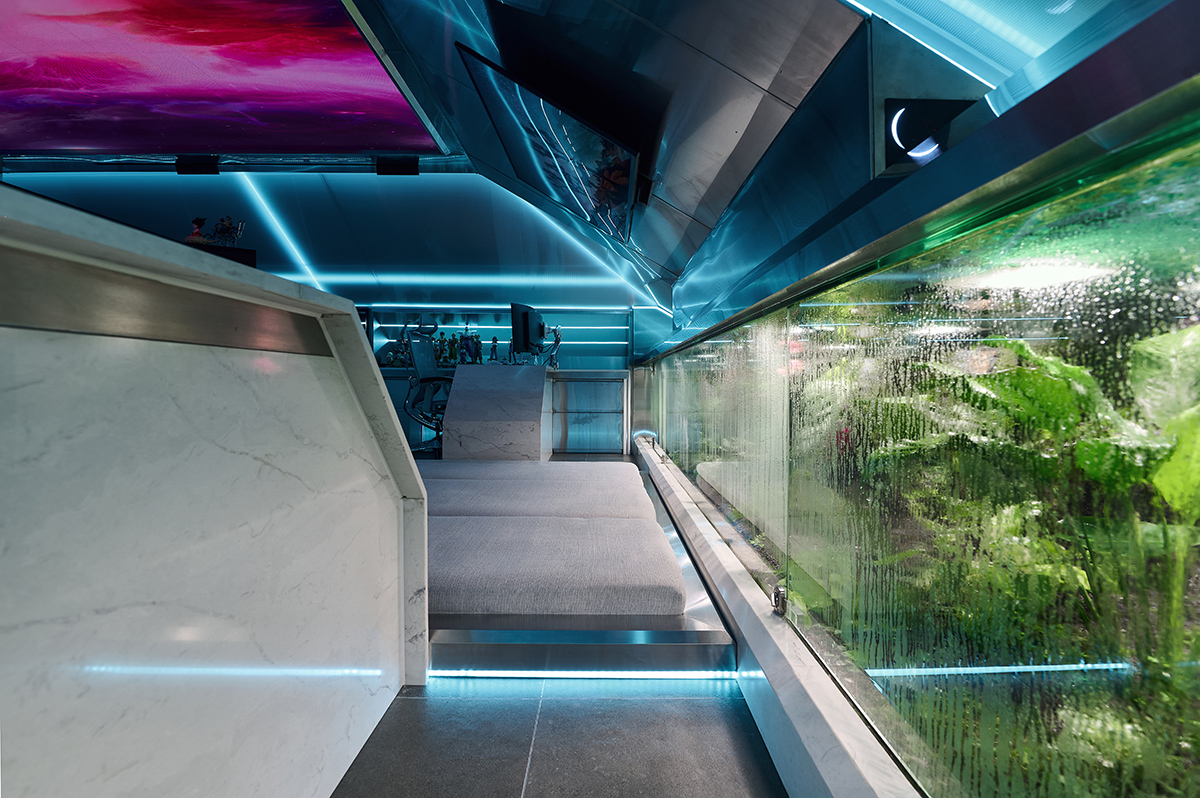 Tất cả được đồng bộ qua hệ điều khiển thông minh liên kết với màn hình LED trần, cho phép mô phỏng bối cảnh và thiết lập nhiều chế độ hoạt cảnh từ làm việc đến giải trí.